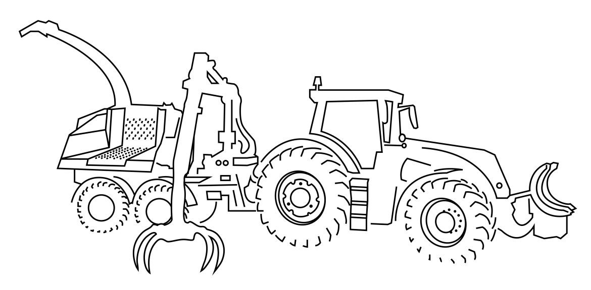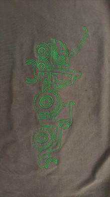 Réalisation d'un dessin d'une déchicteuse à bois pour une broderie sur t-shirt.
